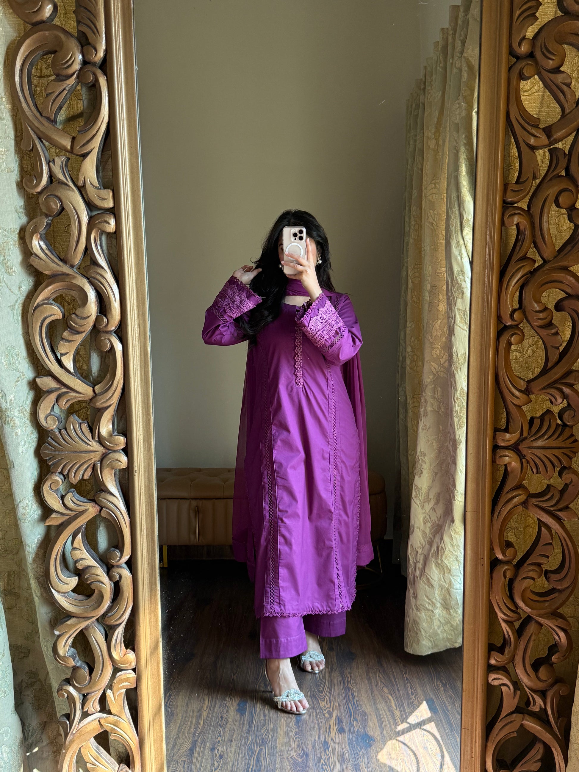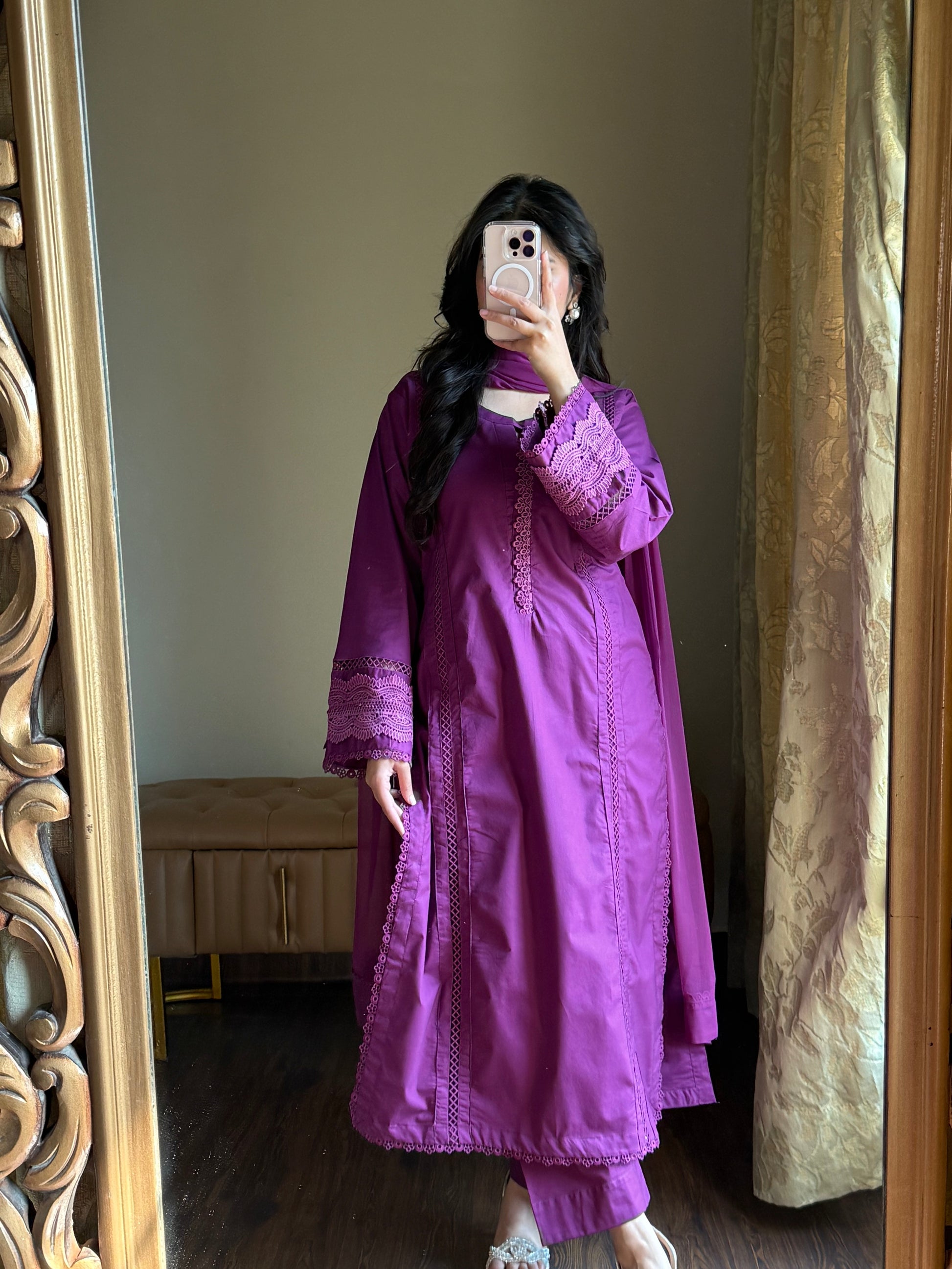 - Tailored from premium Lawn , featuring lacework on the sleeves and daman with Lasswork on the neckline for a delicate, detailed finish.